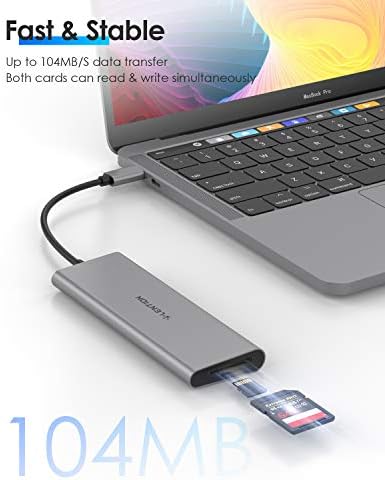 【SD 3.0 Card Reader】Travel size SD/Micro SD(TF) USB C adapter, support dual cards read and write simultaneously, providing UHS-I speed (Up to 104MB/s), much faster than most card readers in the market. VIDEO & AUDIO OUTPUT: Mirror or extend your screen with the HDMI to HDTV, monitor, and projector. Support 3840×2160 4K@30Hz, 2560×1600 and lower resolutions at 60Hz