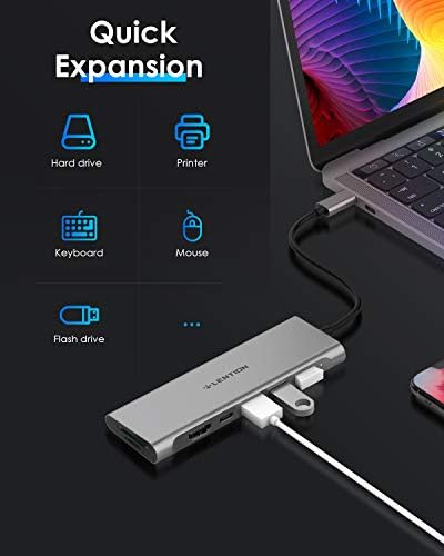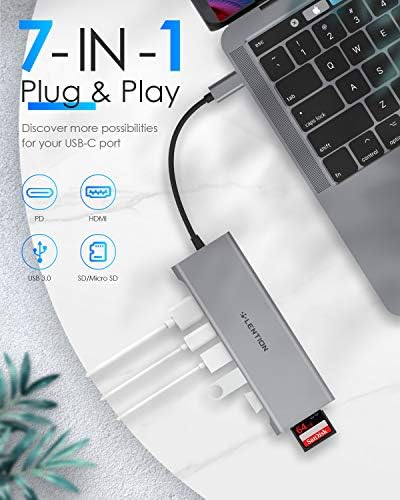 LENTION USB C Multi-Port Hub with 4K HDMI, 3 USB 3.0, SD/Micro SD Reader, Type C Charging Compatible 2021-2016 MacBook Pro, New Mac Air/Surface, More, Stable Driver Adapter (CB-C36B, Space Gray)