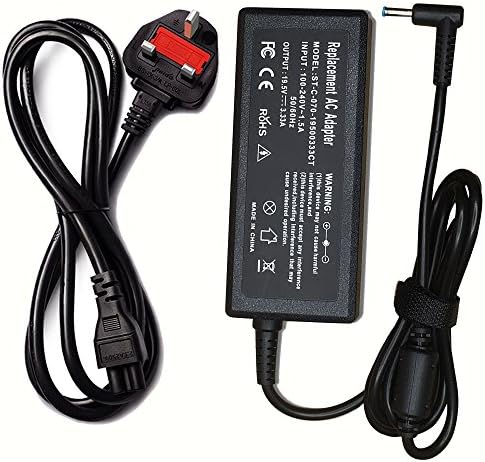 Input: AC 100V~240V, 50/60Hz ; Output: DC 19.5V~3.33A, 65W ; Connector size: 4.5mm x 3.0mm, Blue tip with pin inside