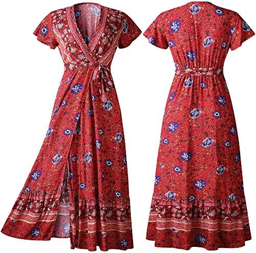 <br> Package Dimensions : 11.65 x 9.17 x 0.98 inches; 11.71 Ounces <br> Department : Women <br> Date First Available : September 11, 2020 <br> ASIN : B08HVPHCDL <br><br>Imported<br>Tie closure<br>Wrap Dress: The belt is attached to the maxi dress, the waist tear on the dress for the strap/belt to go through.<br>Material: Maxi dresses for women summer is made of lightweight , soft and breathable fabric keeps you cool in summer all day.<br>Features: Front high split maxi dresses, deep v-neck wrap design dress, short butterfly sleeve, hight waist , frill hemline, swing flowy long dress for women.<br>Style: Summer dresses for women/maxi dress summer / wrap dress/ long dress for women/casual dress for women/v neck dress for women/short sleeve dress/boho dress for women/maternity dresses. Flattering shape in boho style Dress.<br>Occasions: V neck maxi dress suitable for beach, wedding guest, evening party, cocktail, club, holiday, tea party, maternity,casual daily wearing.Pair it with summer sandals or high heeled shoes, which make you more feminine and charming.