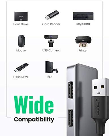 【4 Ports USB Hub USB 3.0 Expansion】 Turn 1 USB port into 4 USB 3.0 ports, keeping you away from the trouble of USB port shortage. UGREEN 4-port USB 3.0 hub simply helps you to connect up to 4 USB devices to your PC, PS4, or Laptop, such as external hard drives, USB flash drives, mouse, keyboard, USB headphone, speakers, card reader, and more USB devices. 【NOTE】 To ensure the best performance of this USB A hub, please do not use it for charging purposes, data transfer only.
