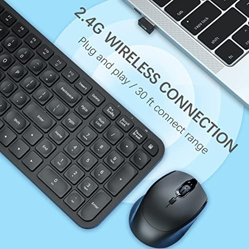 【Wireless Freedom + 1-Year Warranty】Keyboard and mouse combo use stable 2.4G wireless connection. Plug and play. Wireless full size Keyboard has a compact shape which can save space. This product provides one-year warranty service. If you have any quality problems after receiving the product, please contact our online service. We will provide you with satisfactory after-sales service.